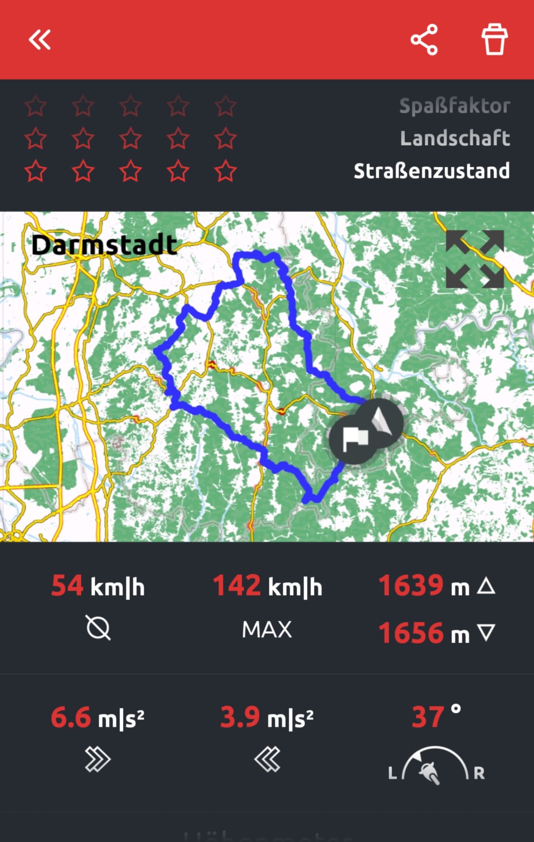 - Calimoto erfasst während der fahrt folgende Telemetriedaten. Maximale Beschleunigung, maximale Verzögerung, maximale Schräglage, überwundene Höhenmeter, maximale und durchschnittliche Geschwindigkeit
