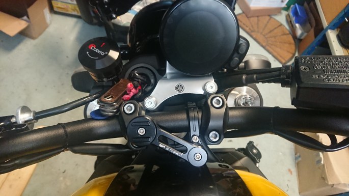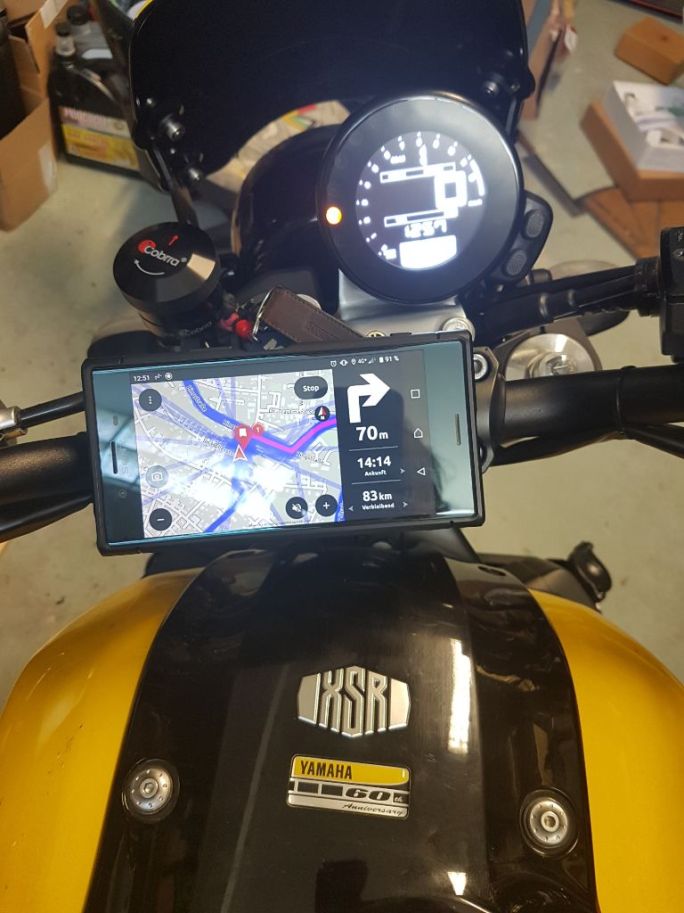 Optisch fügt sich das Ganze sehr schön ins Cockpit von Ylvie ein. Liegt natürlich auch daran, dass dort Schwarz die vorherrschende Farbe ist. Vom Winkel her kann man sich das genau so zurechtlegen wie es am besten passt. Ich selbst habe nach einer ausgiebigen Probefahrt auch nochmal nachjustiert, da der Neigungswinkel und der Abstand zum Tacho für mich noch nicht ganz optimal war. Aber über die Zahnkränze und die paar Schrauben lässt sich das flott neu Einstellen, genau so wie man das haben will. Es gibt die Halterung übrigens auch in Chrom, wenn man das denn möchte.