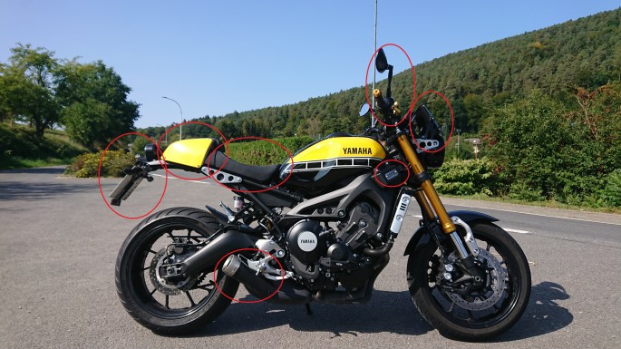 Von Kleinigkeiten wie Blinker und Rücklicht, über Tachoverlegung bis hin zu einer kompletten Farbänderung durch die Tankcover, ist theoretisch alles drin. Zugegeben, die Tankcover sind nicht ganz billig, aber immer noch billiger als ein komplett neuer Tank und sehr schnell auszutauschen. Wer möchte, kann jeden Tag in einer anderen Farbe durch die Gegend fahren. Wem das Zubehör direkt von Yamaha nicht genügt: natürlich haben auch andere Anbiete schöne Teile für die XSR900.