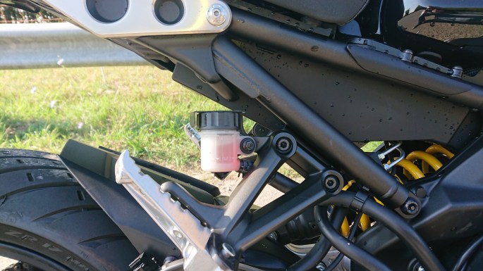 Natürlich: besser geht immer. Und besser als Serie sowieso. Aber selbst mit dem Serienauspuff ist der Sound der kleinen schon solide. Vom rau-knurrenden 3-Zylinder Sound beim harten Beschleunigen bis hin zum herrlichen Brabbeln im Schiebebetrieb, einfach schön anzuhören. Nicht zu Laut, nicht zu leise, kann man gut mit leben und es besteht kein zwingender Handlungsbedarf. Wer das Ganze etwas dumpfer möchte, der Zubehörmarkt bietet natürlich Alternativen an. Wobei da Vorsicht geboten ist: einige Zubehör Anlagen fressen etwas Leistung und neigen dazu, das berühmten „Konstantfahrruckeln“ hervorzurufen. Wer auf Nummer sicher gehen möchte, der greift zu Akrapovič. Preislich nehmen sich die namhaften Hersteller alle nicht viel, man muss bei der XSR900 sowieso immer komplett mit Krümmer tauschen.