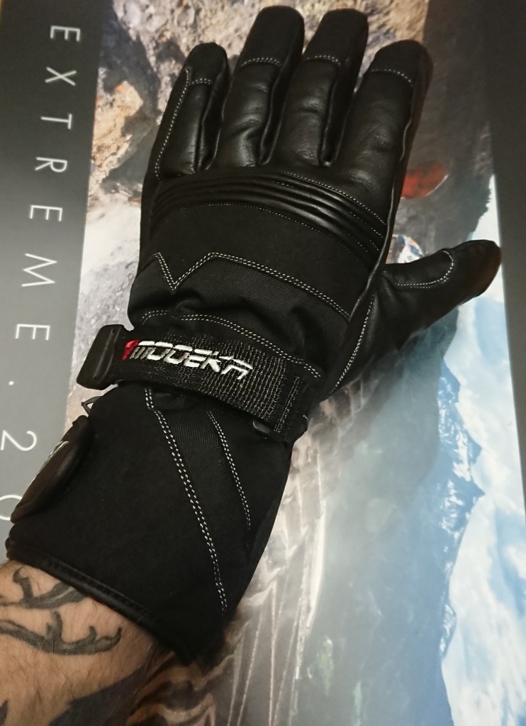 Liest sich jetzt erst mal so, als ob das nicht vereinbar wäre. Ist es aber! Meine Wahl fiel auf die Modeka Freeze Evo Winter*. Bei Tourenfahrer im Test schnitten die Teile ganz OK ab, der Preis war unschlagbar (unter 30 €), sehen echt nicht übel aus und auch die Schutzfunktion war gegeben.