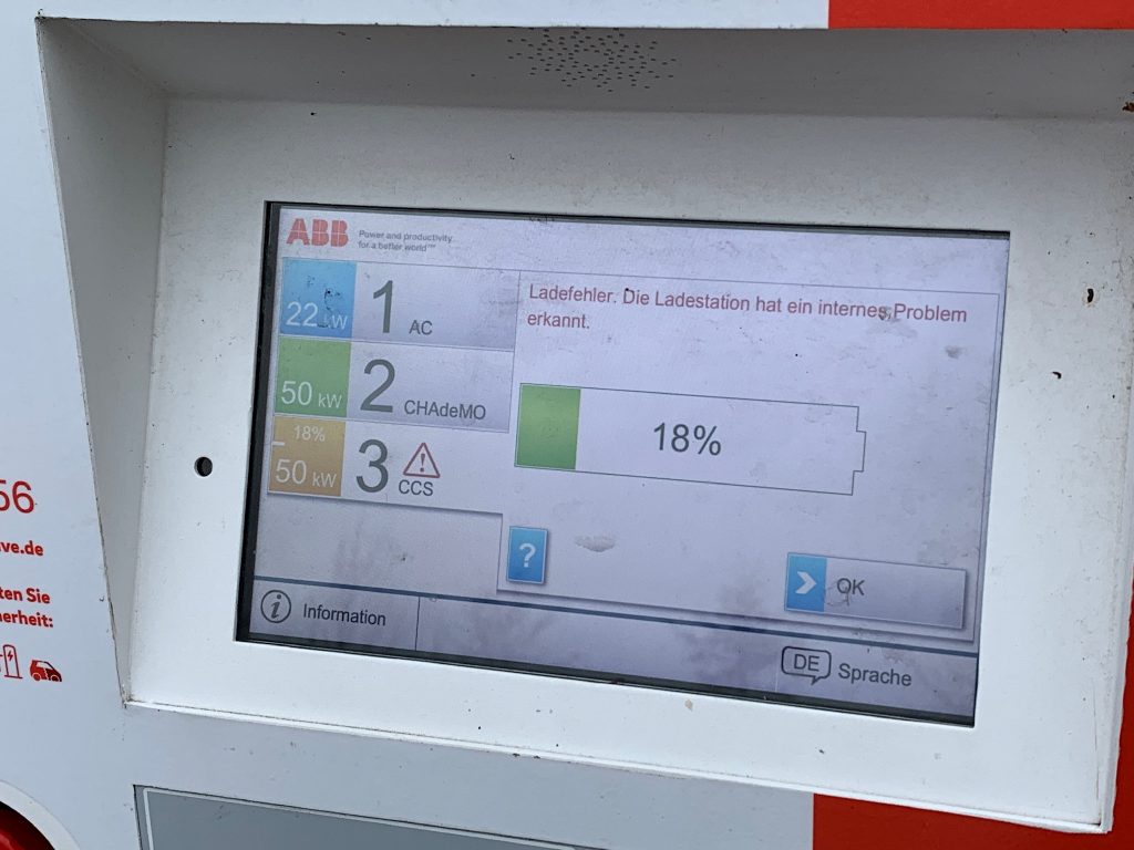 Was auch immer wieder auffällt, besonders bei Reiseberichten von Elektromobillisten: defekte Ladesäulen. Denn nur weil man nach etwas rumgegurke eine der zwei Ladesäulen in Hintertupfing gefunden hat, heißt das ja noch lange nicht, dass diese auch so funktioniert wie sie soll. Und dann darf man, mit entsprechend wenig Restreichweite, erst mal das Handy zücken und schauen, wo denn die nächste Ladesäule steht. Und ganz fest hoffen, dass diese dann auch wirklich funktioniert.