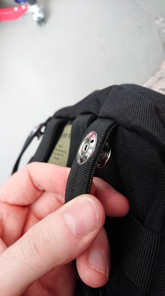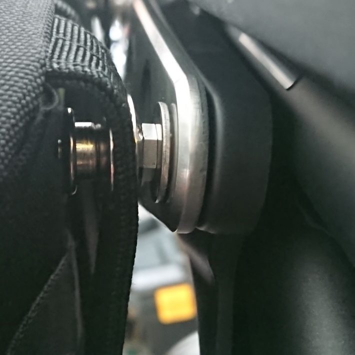 Die Buchsen, in die ihr die M6er Unterteile eingeschraubt habt, sind zwar „nur“ Gummibuchsen mit Gewindeeinsatz, die sich durch Festziehen sichern, aber die halten eine normale Beladung locker aus. Natürlich sollt ihr keine 10kg in die Taschen packen, einfach mit etwas Sinn und Verstand an die Sache ran gehen und dann passt das.