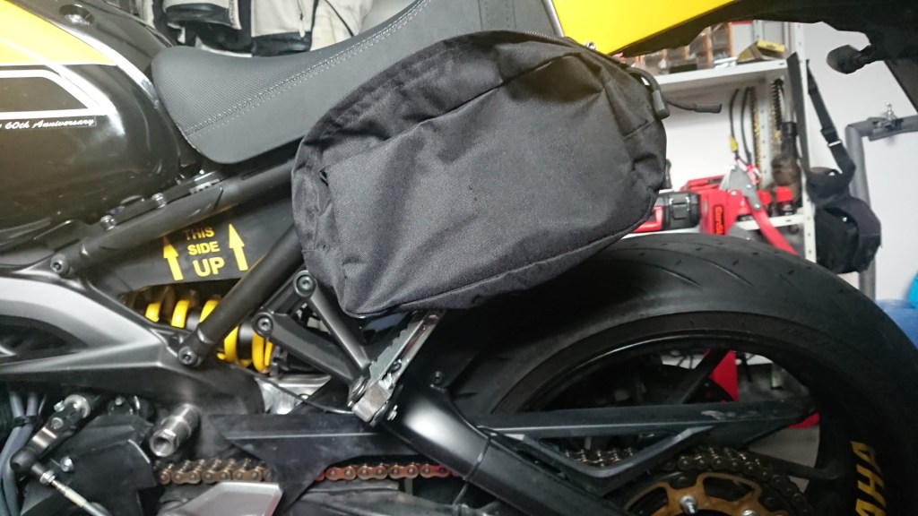 Für wenig Geld eine nicht zu hässliche Gepäcklösung für die XSR900, die auch ohne Taschen nicht wie hingeschissen aussieht. Das Platzangebot in den Taschen ist mehr als ausreichend (4x 0,5l PET Flaschen pro Seite) und zusammengefaltet nehmen die auch so gut wie keinen Platz weg. Also auch perfekt dafür geeignet, um die Dinger auf Reisen einfach mal in die große Hecktasche zu werfen und dann am Zielort einfach schnell dran zu clipsen, um für Tagesausflüge und kleine Einkäufe gewappnet zu sein.