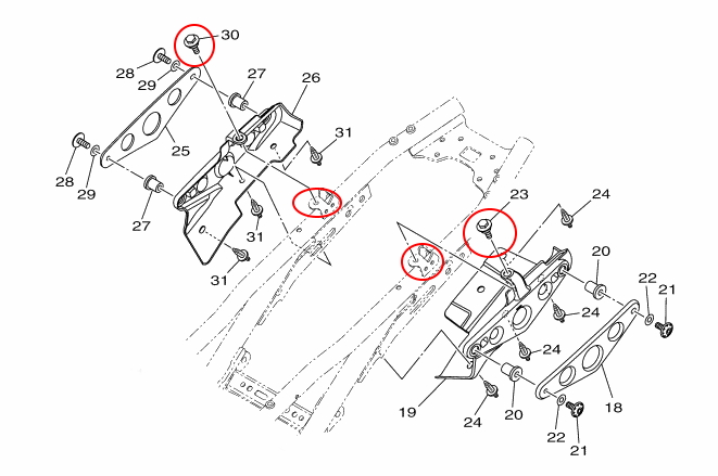 Falls ihr bedenken habt was die Stabilität angeht (besonders auf der rechten Seite): dieser komplette Kunststoffkasten wird nicht nur von den unteren Nieten gehalten. Das Teil ist im Heckrahmen verschraubt.