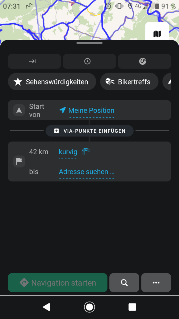 Neben den großen und sofort sichtbaren Veränderungen wurde natürlich auch eine ganze Menge unter der Haube verändert. Die allgemeine Routenführung, die gerade Anfangs noch hier und da etwas abenteuerlich war, wurde sehr stark überarbeitet. Man wird nicht mehr durch irgendwelche Nebenstraßen in Dörfchen geleitet, weil da 2 Kurven mehr sind als auf der offiziellen Ortsdurchfahrt. Man wird auch nicht mehr auf zwielichtige Waldwege geschickt (wie vor ein paar Jahren im Schwarzwald), obwohl quasi neben dran eine schöne und gut ausgebaute Landstraße gewesen wäre. Die Routenführung empfinde ich mittlerweile als sehr angenehm und kann mich zu 99 % darauf verlassen. Die restlichen 1 % sind irgendwelche seltsamen Verkehrsführungen, das macht mein „vollwertiges“ Navigationssystem im Auto dann aber auch nicht besser.