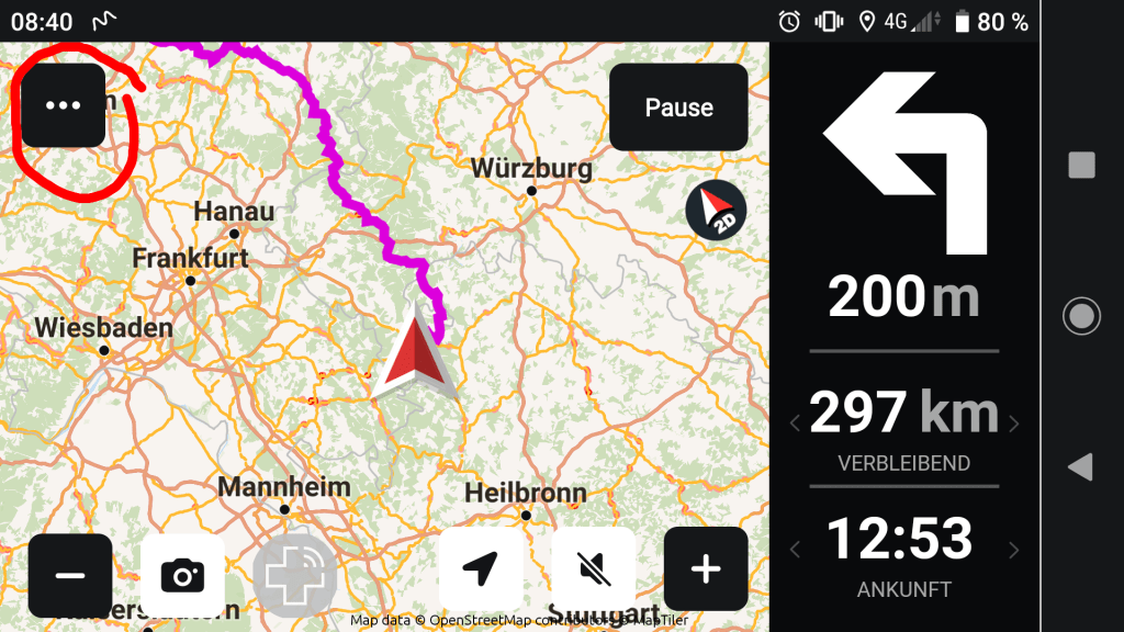 Was damals noch ein Super-GAU war: wenn die App vom Betriebssystem beendet wurde, oder (und das ist mir wesentlich häufiger passiert), ich die App aus Versehen über „alle Tasks beenden“ gekillt habe. Die Navigation war beendet, die getrackte Route verloren…