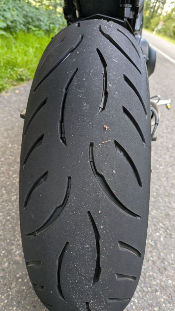 Beim Einfahren habe ich wirklich versucht, den Reifen leicht zum Rutschen zu bringen. Mit und ohne Traktionskontrolle. Aber bei 26 °C, warmen Reifen und gutem Asphalt muss man da schon sehr unvernünftig und ruckartig ans Gas gehen, damit sich da was tut. Der Grip war beim Roadtec01 SE schon nicht schlecht, aber hier habe ich den Eindruck, dass sie tatsächlich noch eine kleine Schippe draufgelegt haben. Man hat einfach ein sehr gutes Gefühl in größeren Schräglagen und das Rausbeschleunigen aus der Kurve macht direkt einen kleinen Ticken mehr Spaß als mit anderen Reifen.