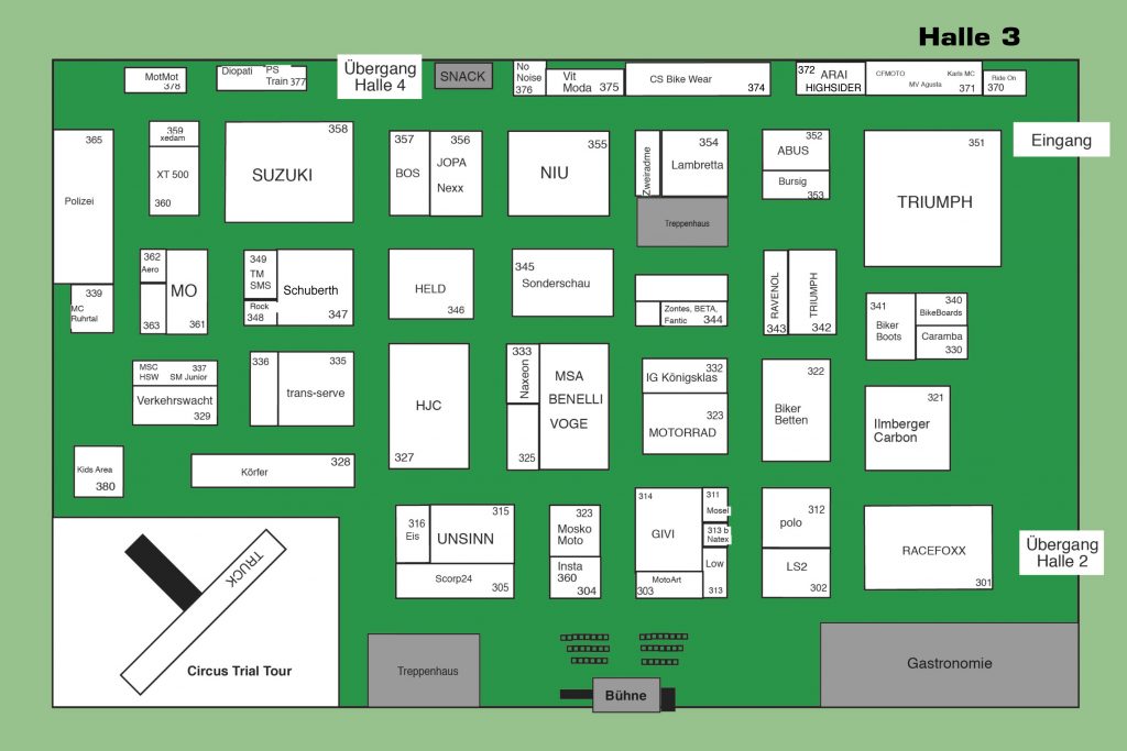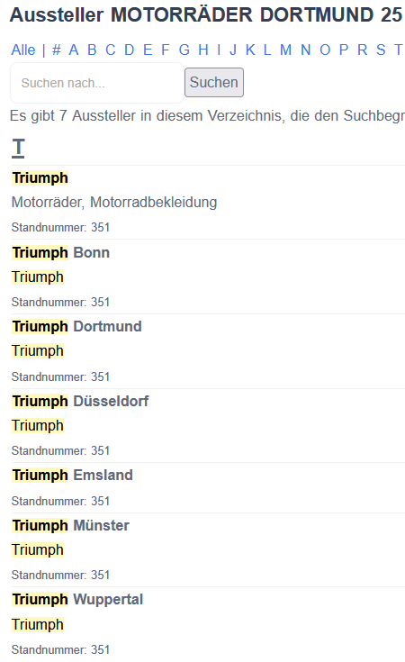 Laut Ausstellerverzeichnis tummelten sich alleine auf dem Triumph Stand sieben Aussteller. So bekommt man die Liste natürlich auch voll.