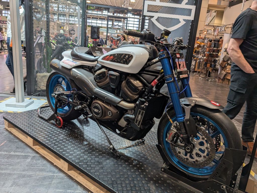 Eintrittspreis von 18 € pro Karte ist OK und man hätte auf dem Gelände für 10 € parken können (Motorräder parken gratis), wir haben aber direkt in Hotelnähe (Innenstadt) geparkt, da wir ja am Abend noch was vorhatten. Der Andrang auf der Messe war gegen 12:00 entsprechend groß, vor allem in Halle 4, wo viele große Motorradhersteller (Kawasaki, Harley, Yamaha etc.) ihre Stände hatten. Probesitzen war also erst mal eine Geduldsprobe. Und da Geduld bei mir eine eher begrenzte Ressource ist, wurde erst mal so über die Messe gebummelt, um sich einen Überblick zu verschaffen.