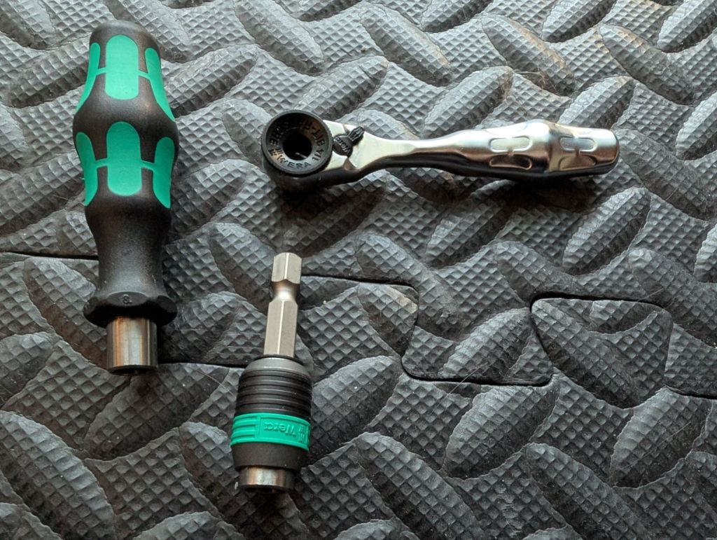 Die Verarbeitung ist, wie von Wera gewohnt, hervorragend. Alles hält an seinem Platz, nichts fällt raus und die Werkzeuge sind wie immer ein ergonomisches Fest. Die kleine Ratsche sieht zwar unscheinbar aus, kann aber für die geringe Größe ein ordentliches Drehmoment (min. 65 Nm) übertragen.