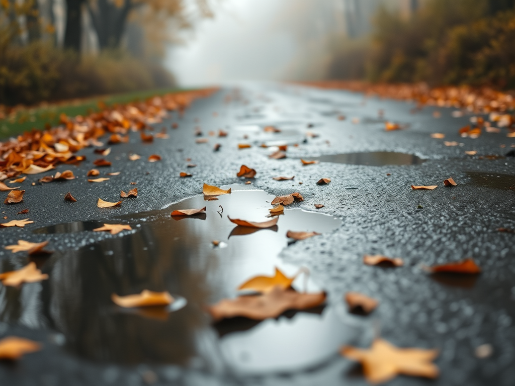 In einem Moment perfekt trockene Straße, eine Kurve später alles Nass. Bei der üblichen Witterung im Herbst gibt es Straßenabschnitte, die nur noch schwer trocknen. Hinter jeder Kurve kann also nasser Asphalt lauern, mit allen Unannehmlichkeiten die das so mit sich bringt.